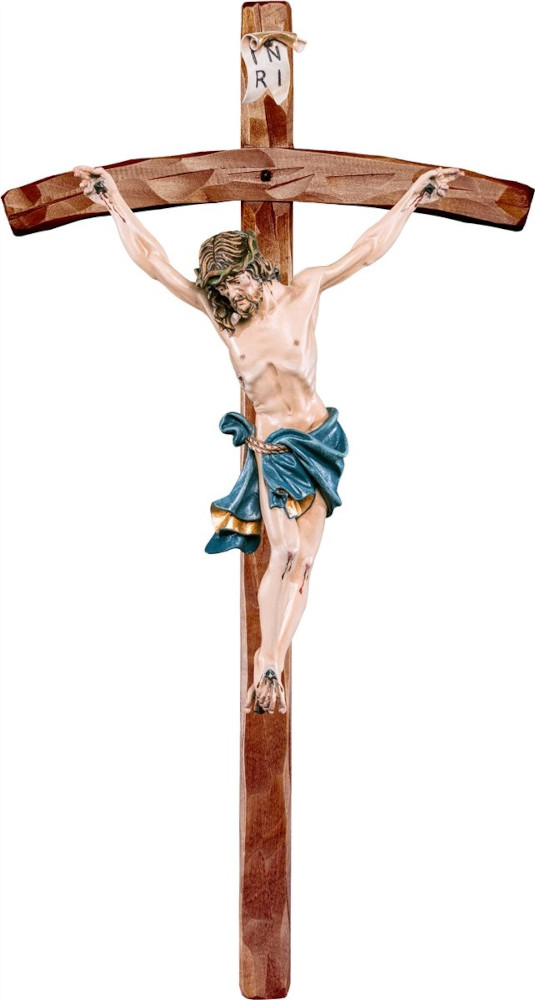 Alpenchristus blau mit gebogenem Kreuz antik